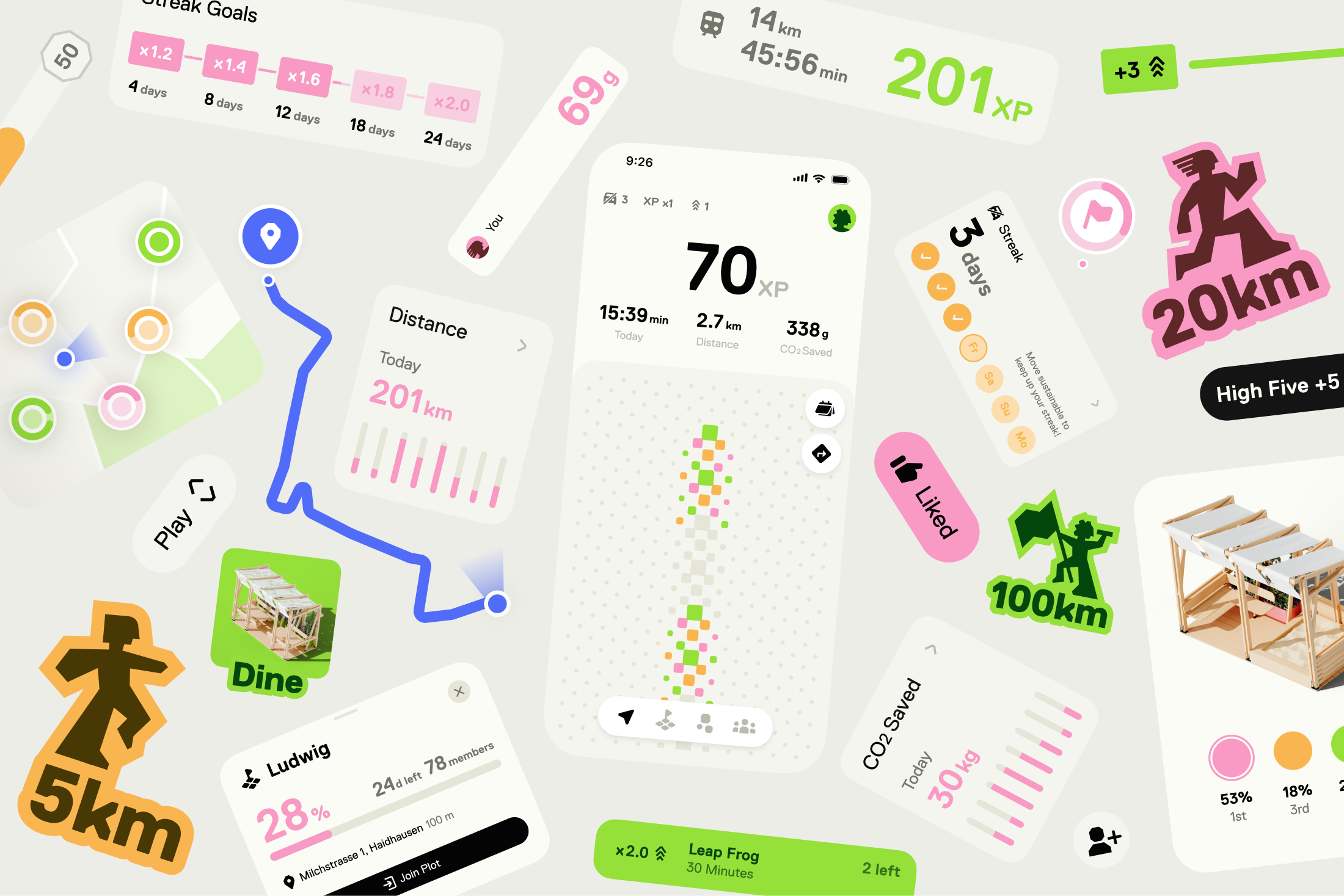 Users collect XP by choosing sustainable modes of transport and completing challenges along the way. Through gamification, the shift in mobility behavior becomes a playful experience.
